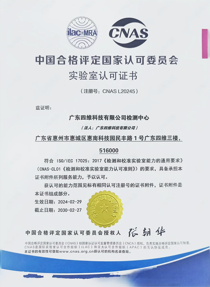 廣東四維科技有限公司檢測中心試驗場所超過600平方米,并已獲得防墜落裝置相關產品CNAS認證,是同行業內具有此項認證資質為數不多的檢測中心。本中心具備理化性能、機械性能、電氣性能、安全性能的試驗檢驗能力,確保產品質量和生產過程的控制。