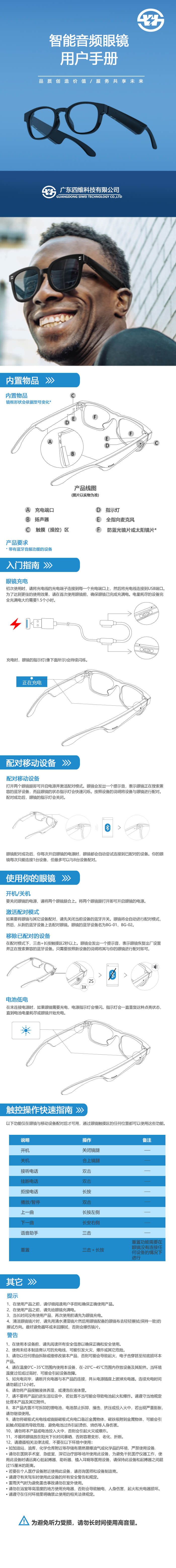 智能音頻眼鏡說明書